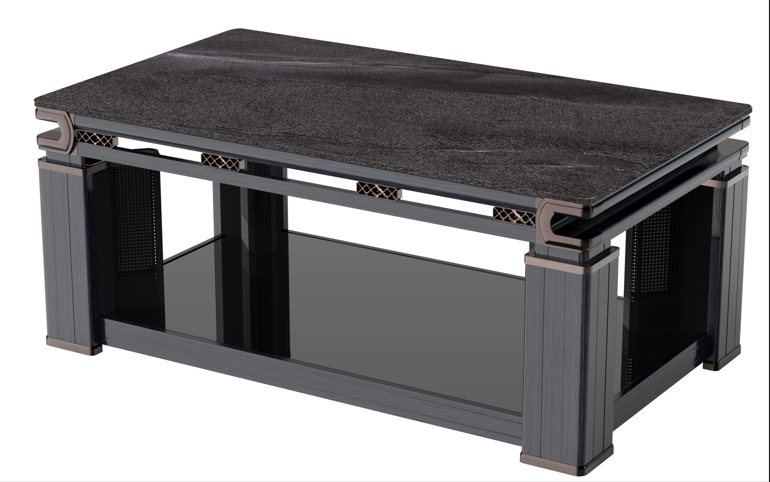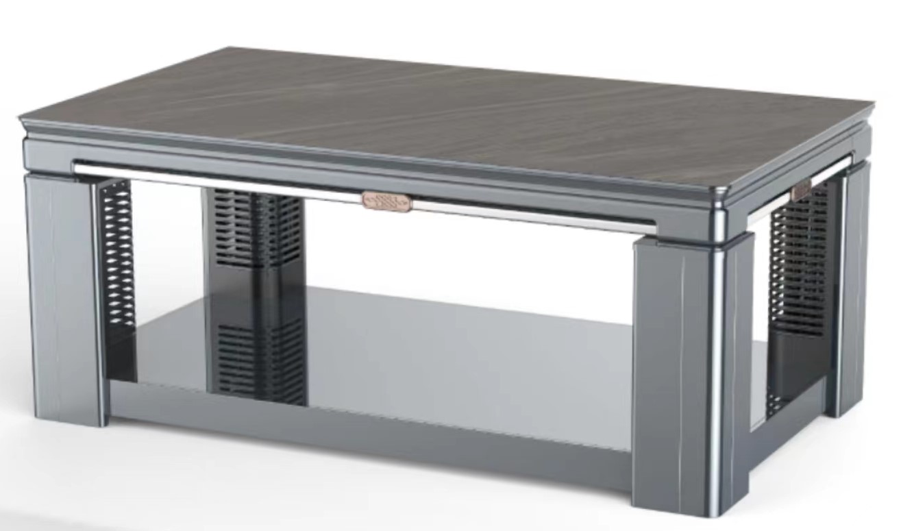 巖板、電磁爐、智能語(yǔ)音,電鍍轉(zhuǎn)角,中層架,鋁板發(fā)熱,黑木紋色,收納線盒,單開(kāi)關(guān)控制